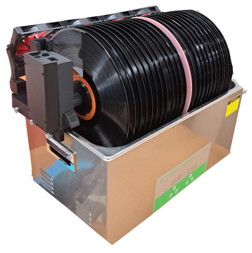Ultrazvočni čistilec za gramofonske plošče je bil izdelan za to, da se gramofonske plošče pred poslušanjem očistijo prahu in raznih maščob. S tem se tudi precej izboljša zvok. Uresničen je bil na začetku zastavljen cilj – čistilec lahko naenkrat čisti 50 plošč (drugi čistilci na trgu lahko največ 24), strošek je vsaj 10-krat nižji od konkurenčnih in sestava ter čiščenje sta zelo enostavna. Prijavitelj projekta se je naučil, kako čim bolj poenostaviti in optimizirati dele za 3D-tisk, kako v sestav vključiti razne strojne elemente in kakšne tolerance pri 3D-tisku izbrati, da bo na koncu vse skupaj možno sestaviti.