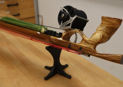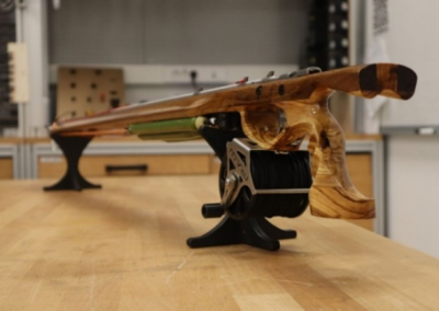 Cilj projekta je bil izdelati podvodno inverzno harpuno, kjer se gume napnejo s pomočjo škripčevja. Njihova prednost pred klasičnimi je visoka izstopna hitrost puščice in dobra preglednost, a ima slabosti, ki sta hidrodinamičnost in uklon samega telesa. V sklopu projekta so se narisali trije različni modeli, pri katerih so se sistematično izboljševale slabosti, tako da so se te odpravile oz. zmanjšale. Za model se je izdelal program za CNC-rezkalni stroj, na katerem se je obdelal lesen surovec. Obdelava surovca je na stroju trajala 10 ur. Ročaj je bil izdelan ročno, ki se ga bo naknadno skeniralo in dodalo 3D-modelu.